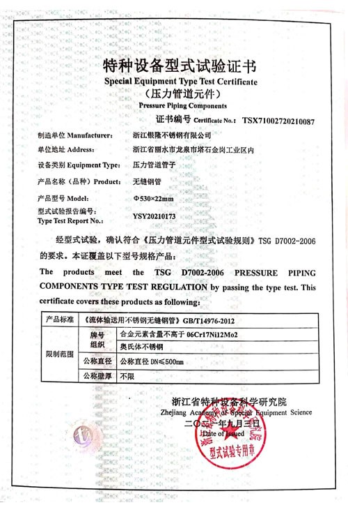 銀隆不銹鋼是國內(nèi)同行中生產(chǎn)和檢測設(shè)備先進(jìn)企業(yè)。生產(chǎn)設(shè)備有大小管冷拔設(shè)備60臺(tái),LG30冷軋?jiān)O(shè)備28臺(tái)、LG60冷軋?jiān)O(shè)備23臺(tái),LG120冷軋?jiān)O(shè)備1臺(tái),LG150冷軋?jiān)O(shè)備2臺(tái),LG220冷軋?jiān)O(shè)備1臺(tái),LG280冷軋?jiān)O(shè)備1臺(tái)。光亮退火爐3臺(tái),天然氣退火爐6臺(tái)。檢測設(shè)備有力學(xué)試驗(yàn)設(shè)備、金相設(shè)備,腐蝕試驗(yàn)設(shè)備,化學(xué)分析設(shè)備,超聲波探傷儀、渦流探傷儀、水壓試驗(yàn)儀等等。